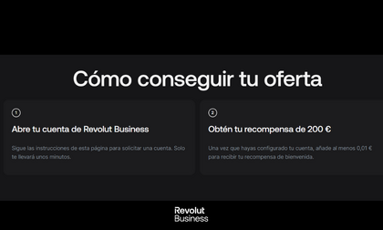 En los últimos meses, Revolut ha lanzado una de las promociones más atractivas para empresas y autónomos: una recompensa de bienvenida de 200 € simplemente por abrir una cuenta Revolut Business desde la página oficial de la oferta y realizar una recarga mínima de 0,01 €. En Rankia hemos revisado las condiciones completas y te explicamos cómo aprovecharla, qué requisitos tiene y hasta cuándo estará disponible. Revolut está apostando fuerte por su cuenta Business y, para impulsar nuevas altas, ofrece 200 € a todos los nuevos clientes que abran su cuenta desde la landing habilitada específicamente para esta campaña. Promoción Revolut