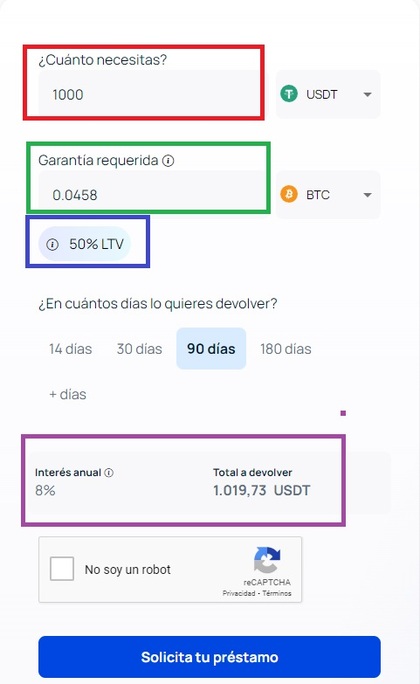 Importe del préstamos: 1.000 USDT