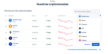 Por un lado, Bit2Me ofrece más de 410 criptomonedas disponibles para operar, incluido su propio token B2M.