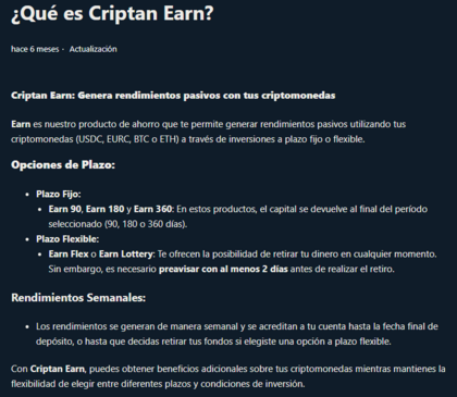 Criptan, exchange nacido en 2018, persigue una experiencia del estilo fintech: presenta una interfaz de usuario minimalista centrada en cuatro pilares: Wallet unificada, Earn, Savings, Loan (préstamos con garantía de BTC) y Cestas.