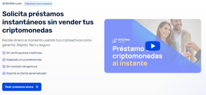Bit2Me Loan concede liquidez al instante (hasta 1 millón de euros) dejando BTC o ETH como colateral con un LTV (Loan-to-Value o Ratio Préstamo a Valor) máximo del 50%, sin revisión de crédito ni comisión de apertura. El proceso completo se firma en la web o la app, y el préstamo se ingresa en la misma wallet del usuario.