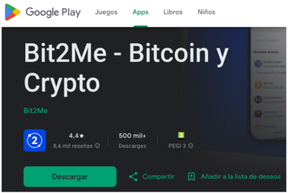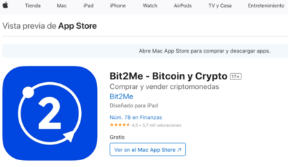 Y en la Apple Store, Bit2Me cuenta con una valoración de 4,5 sobre 5 estrellas: