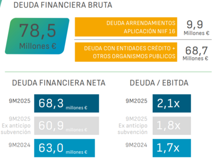Deuda de Reig Jofre en los primeros nueve meses de 2025
