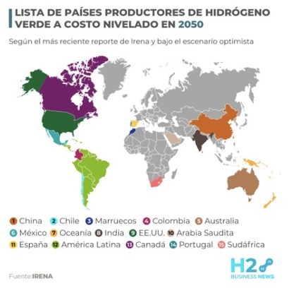 Países productores de hidrógeno verde | Fuente: IRENA