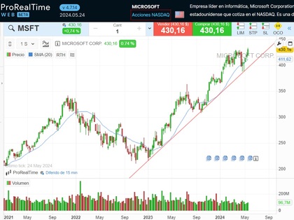 De hecho, su firmeza es tan robusta, que durante las grandes caídas que experimentaron las FAANG en 2022, Microsoft fue de las menos se dejó, alcanzando una caída máxima del 35%, en un momento muy puntual.
