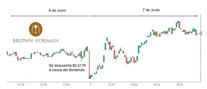 Ejemplo de la cotización de Brown-Forman tras anunciar el pago de su dividendo