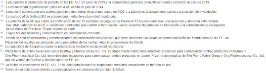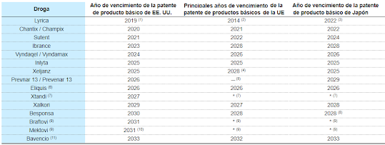 Todos los fármacos acaban por perder la patente, pero las compañías que mejor gestionan esas perdidas producen unos flujos de caja mas estables. Véase el ejemplo de Astrazeneca cuando iba a perder la patente del Prilosec (Omeprazole), la empresa ya había preparado un proceso de cambio a una segunda versión mejorada.