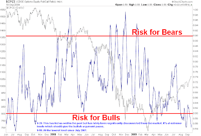 el ratio put/call esta en zona bastante baja... (en el gráfico podéis verlo comparado con el SPX)