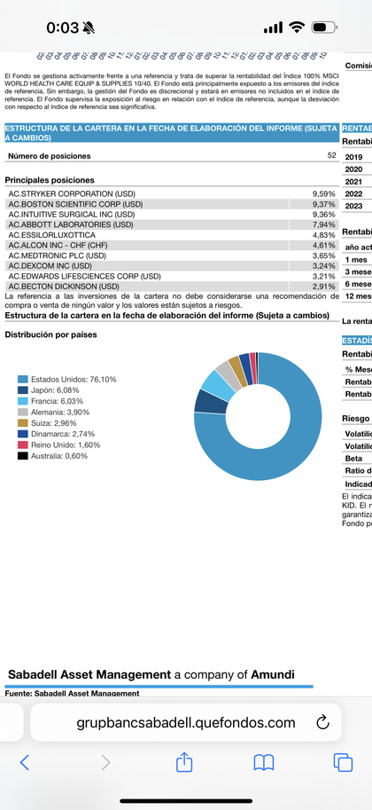 Esa es mi consejo cuando alguien me pregunta sobre un producto ofrecido por el banco, en concreto el genio del banco le había ofrecido el “Sabadell Economía Medical Tech, FI”