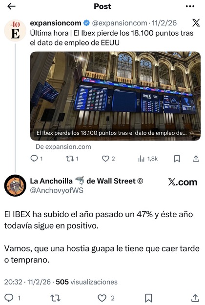 Este señor tiene un perfil en Twitter muy valorado por la comunidad, es un inversor serio, razonable y con el culo pelado ya de ver bolsa pues hace décadas que invierte, es una persona inteligente y afable que es agradable y humilde cuando hablas con él, otros twitteros tan famosos o más no son tan cálidos en las distancias cortas y tienden a endiosarse o tratar mal, pero Anchoilla nunca hace eso, es un gran tipo.