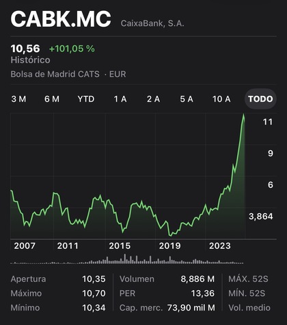 El que me diga que sabía esto de La Caixa simplemente miente. Esto es absolutamente histórico y a pesar de que el oligopolio bancario abusa de su posición de poder, la exuberancia irracional campa a sus anchas.