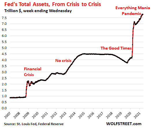 Incluyendo los otros activos que la Fed ha comprado, como $ 2,2 billones en MBS, los activos totales en el balance de la Fed se han disparado a $ 7,9 billones: