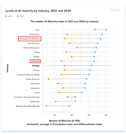 El sector industrial está arriba del promedio en la adopción de tecnologías avanzadas, como la inteligencia artificial (IA), el Internet de las Cosas (IoT), y la automatización. Estas tecnologías están transformando las operaciones industriales, mejorando la eficiencia, reduciendo costes y permitiendo una mayor personalización de los productos. También está facilitando la transición métodos más sustentables y mejorar la toma de decisiones.
