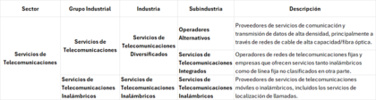 Clasificación del sector de telecomunicaciones