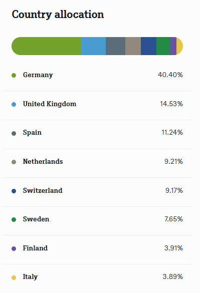 Peso por país Xtrackers MSCI Europe Communication Services ESG Screened UCITS ETF 1C