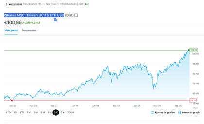 Tiene un coste anual del 0,74 %, reparte dividendos y lleva cotizando desde 2005, así que no es precisamente nuevo. En los últimos años ha tenido rentabilidades potentes, impulsadas por el boom de los semiconductores, aunque también hay riesgo geopolítico con China y cierta dependencia del dólar taiwanés.