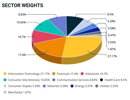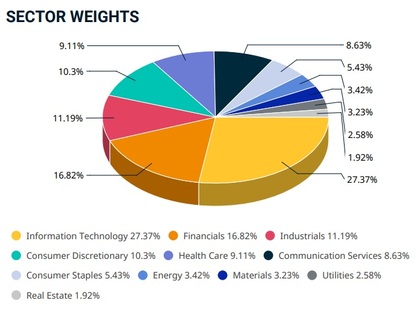 Por sectores, tecnología, finanzas e industria dominan el índice, reflejando el liderazgo de las grandes tecnológicas y el peso estructural de los bancos y conglomerados industriales en las economías desarrolladas.