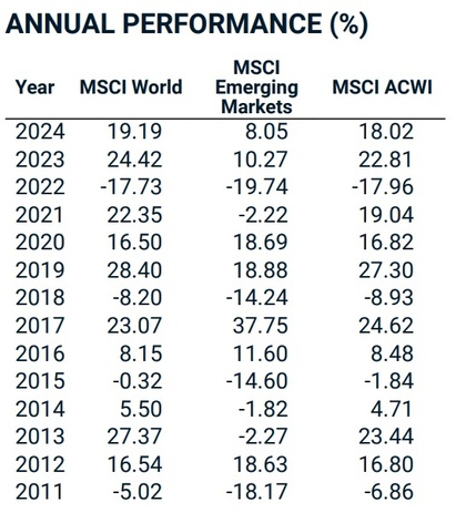 Rendimiento anual de los principales índices - Fuente: msci.com