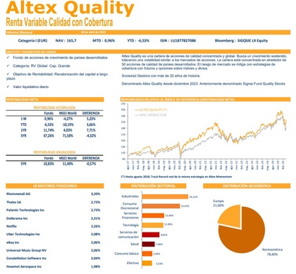 - Altex Quality en renta variable