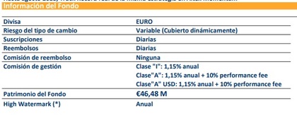 El fondo tiene una beta a 3 años de 0,93 y a 5 de 1,01, por lo que está bastante en línea con el índice en términos de volatilidad.