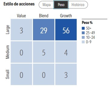 Otro aspecto que podemos analizar es el tipo de compañías que tiene en cartera. Aquí me estoy refiriendo a si son de estilo value, growth o blend.