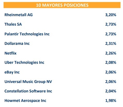 Por último, la gestora mostrará las 10 principales posiciones del fondo y su ponderación en la cartera: