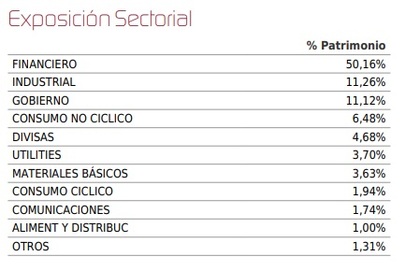 El peso de la deuda pública es también relevante, con una exposición del 11,12 % a bonos gubernamentales, según los datos de la Exposición Sectorial.