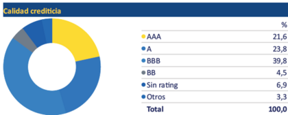 El rating medio de los emisores de la cartera es BBB+. Es una cartera de una alta calidad crediticia.