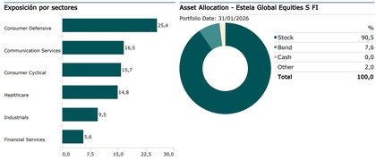 Estela Global Equities es un fondo de renta variable con enfoque global y multisectorial. Invierte principalmente en compañías cotizadas de países de la OCDE —especialmente en mercados desarrollados—, con la posibilidad de destinar hasta un 20 % a mercados emergentes.
