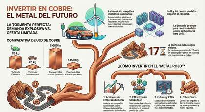 En la práctica, es una forma de jugar la tesis de que el cobre va a seguir siendo uno de los metales clave para la electrificación, las renovables y los vehículos eléctricos, pero entrando a través de empresas mineras y no del propio futuro de cobre, mucho más volátil.