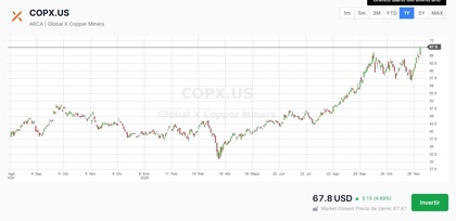 Gráfico que muestra la rentabilidad del ETF de mineras de cobre en Freedom24