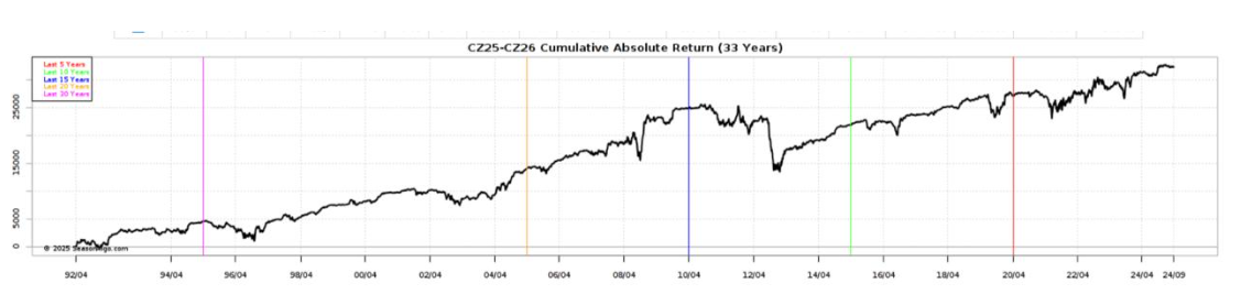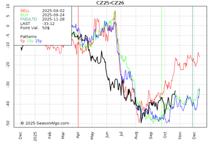 En el siguiente gráfico (CZ25–CZ26) puede observarse la evolución típica del spread: