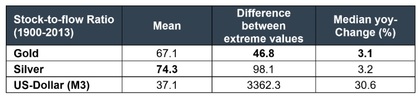 En este sentido, es importante explicar el concepto de “Stock to Flow”, el cual viene a determinar la relación entre las existencias totales de un activo y el flujo o creación nueva anual de ese activo ya que nos permite comparar la utilidad, como activo monetario, del oro en relación con otros patrones o estándares utilizados (plata y dinero fiduciario).