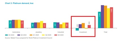 Inversión (aprox. 8-9%): Como ves, este es el segmento más pequeño de la demanda. Y es que a diferencia del oro, el precio del platino es mucho más sensible a los ciclos económicos e industriales. De este modo, su inversión puede realizarse a través de barras/monedas, pero también flujos de activos como acciones, ETFs o participaciones en el mercado de futuros.
