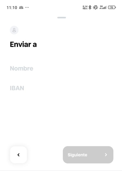 Pantalla en la que indicar a quien vas a enviar el dinero