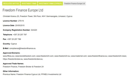 Como ya hemos indicado al inicio, Freedom24 es un bróker con sede en Chipre, por lo que inicialmente está regulado por la CySEC, autoridad financiera del país. El número de licencia con el que está registrado en esta entidad es el 275/15. Esto le autoriza para operar en Europa con todas las garantías que exige la Unión.