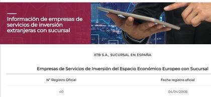 En España, donde también tiene sede, se encuentra registrado en la CNMV con el número 40. XTB está registrada en la CNMV con número 40