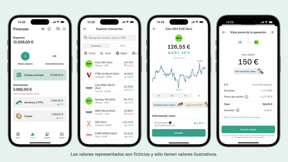 Desde la app de N26 puedes invertir en acciones y ETFs de manera sencilla, accediendo a una amplia selección de empresas y fondos cotizados internacionales. Todo el proceso se realiza directamente desde la aplicación, con una interfaz muy intuitiva y pensada para que cualquier usuario pueda empezar a invertir sin complicaciones.