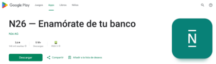 Esa misma puntuación podemos ver en Google Play Store, procedente de los usuarios de la app para Android de N26: