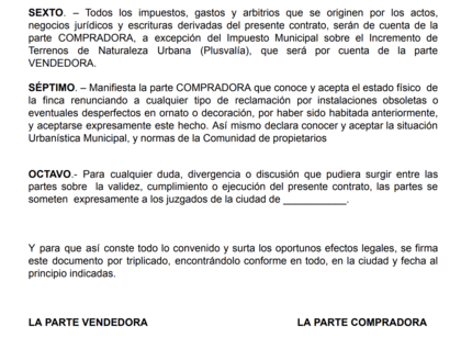 Hola tengo una duda en el contrato de arras lo que esta por debajo de la firmas sigue teniendo la misma validez aunque este en letras pequeñas