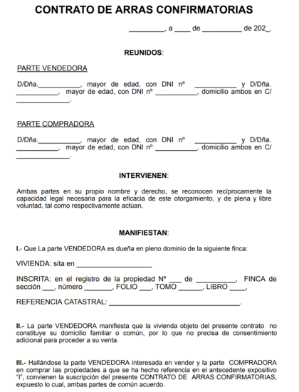 Modelo contrato de arras confirmatorias