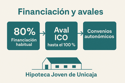 La hipoteca joven de Unicaja está pensada para ayudar a los menores de 35 años (y hasta 40 en Madrid) a comprar su primera vivienda con condiciones preferentes y posibilidad de financiar hasta el 100 % con el aval ICO.