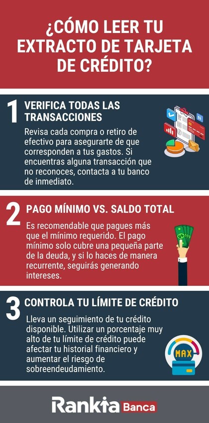 El extracto de tu tarjeta de crédito normalmente incluye la siguiente información: