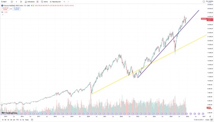 Por otro lado, también existen los Micro E-mini Nasdaq-100(MNQ), una versión 1/10 más pequeña y accesible para traders minoristas, ambos con vencimientos trimestrales (Marzo, Junio, Septiembre, Diciembre) y operables casi 24 horas. Evolución histórica del futuro del E-mini Nasdaq