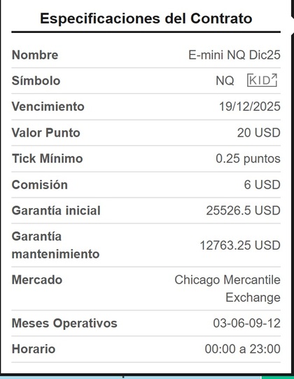 Boleta del futuro E-mini Nasdaq-100 (NQ) Dic. 2025. Fuente: iBroker