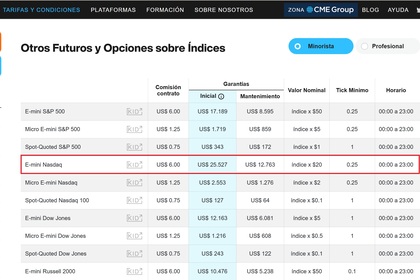 Si el Nasdaq-100 está, por ejemplo, en 24.000 puntos, es 24.000 × 20 USD = 480.000 USD de nocional aproximado por cada contrato E-mini Nasdaq-100.