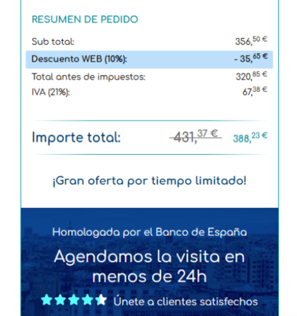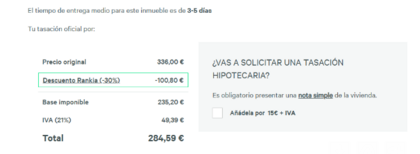 Los importes que aparecen en los pantallazos ya incluyen los descuentos exclusivos por contratar la tasación a través de Rankia, para que conozcas el coste final real que pagarías.