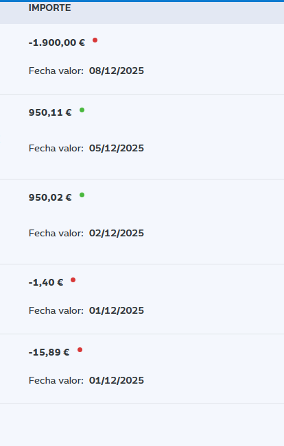 Liada. No me pagaron el 5%, me pone que no cumplí el semestre con la tarjeta y miro el extractoy tengo un cargo cada mes. El caso es que si entro dentro del extracto de la tarjeta para ver sus movimientos, en el mes de diciembre me viene un abono en vez de el cargo y los otros meses perfecto cargo y abono que imagino será para volver a estar a cero con el límite.