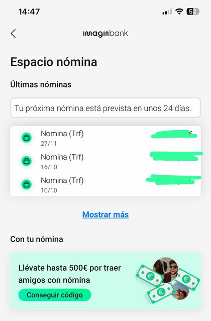 He recibido primera n0mina y me ha llegado notificación por app "Te han ingresado la nómina" y en el movimiento aparece como N0mina (trf).