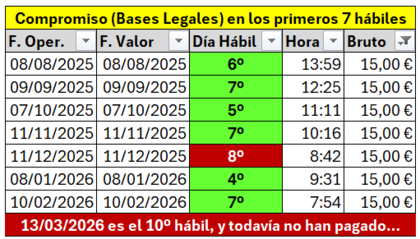 Así que no volveré a llamar pues mucho me temo que me vuelvan a decir la misma o similar tontería. A ver si el lunes, tempranito, ya vemos nuestros 15€ brutos abonados.